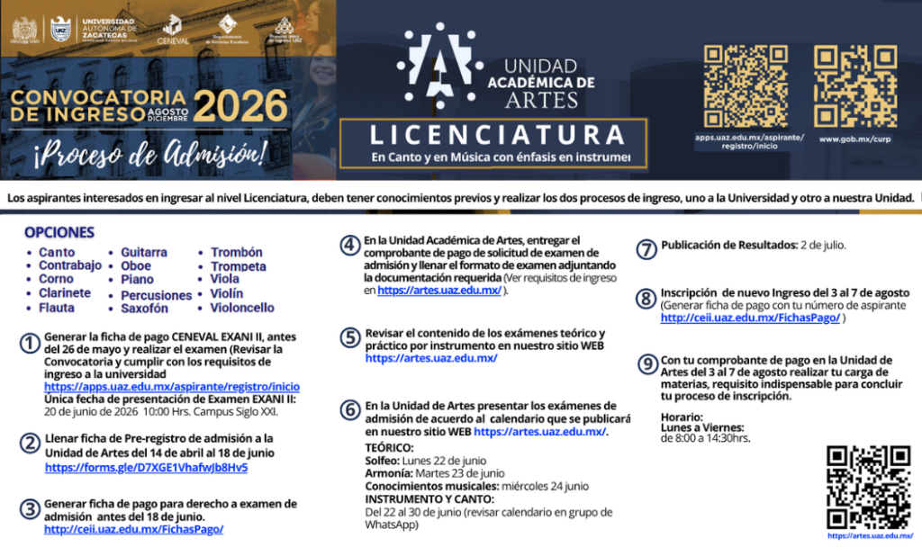En la parte práctica se evalúan las habilidades, destrezas, enfoque y la aplicación de los conocimientos previos del aspirante a ingresar a la Licenciatura en Canto o a la Licenciatura en Música con énfasis en instrumento.